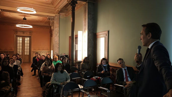 Merci à Anne-Rosine Delbart, présidente de la Maison de la Francité, pour sa chaleureuse invitation et sa magnifique animation de la soirée, à Donald George, directeur, pour son accueil dans ce joyau de la Commission communautaire française, ainsi qu'aux diplomates présents, notamment l’ambassadeur de France en Belgique Xavier Lapeyre de Cabanes, Maxime Woitrin, diplomate à la Délégation Générale Wallonie Bruxelles U.E., ainsi qu'à la directrice de l'Alliance française de Bruxelles Europe et à mon successeur, Ronan Dumas-Labbé, qui a conclu par ses mots amicaux l'événement. Nous avions bien sûr une pensée particulière pour Fabienne Reuter !